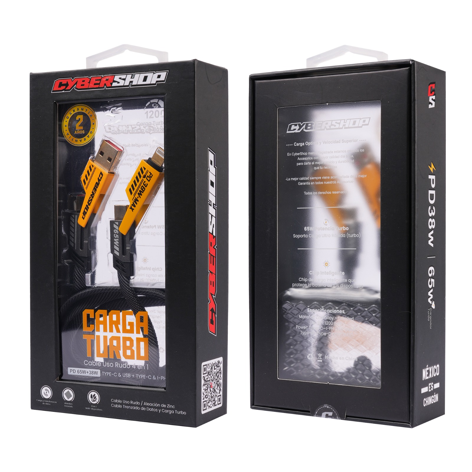 CABLE CARGA TURBO 4EN1 PD 65W+38W CYBERSHOP 1.2M